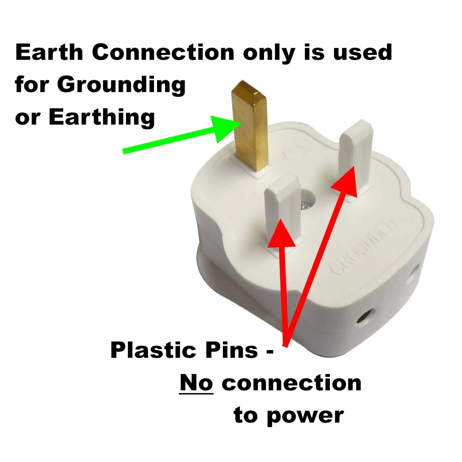 The grounding mat only uses the grounding prong of the plug, which connects to the earth's energy. The other prongs in the plug are made of plastic and are not connected to any electrical current. This ensures that only the grounding element is active, and no electricity is involved.
